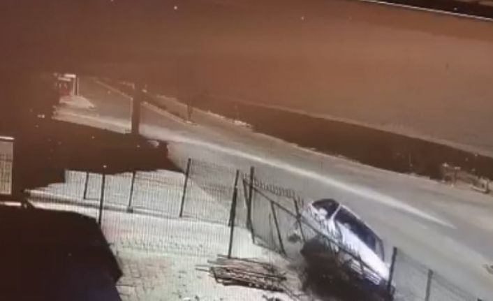 Öte yandan kaza anı bir işyerinin güvenlik kamerasına yansıdı. Görüntülerde aracın gelişi ve demir çitlere çarptığı ve yan yatmaya başladığı anlar yer aldı.