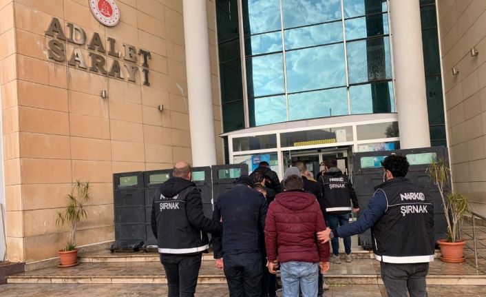 Cizre Narkotik Suçlarla Mücadele Grup Amirliği’nin uyuşturucu satışı, kullanımı ve ticaretinin önlenmesine yönelik sokak satıcılarına 19 Aralık’ta 100 polisin katılımı ile gerçekleştirdiği eş zamanlı şafak operasyonunda gözaltına alınan 11 torbacıdan 7’si tutuklanarak cezaevine gönderildi. Cizre’de son bir ayda uyuşturucu denetimi yaparak zehir tacirlerine göz açtırmayan Cizre Emniyet Müdürlüğü Narkotik Suçlarla Mücadele Grup Amirliği ekiplerinin uzun süreli takibinin sonucu K.O, S.İ, F.B, A.V.B, F.D, Y.K., M.E.İ, C.A. ve B.Z. yakalanarak gözaltına alındı. Aynı suçtan aranan M.Ç. ve S.C. de yakalanarak gözaltına alındı. Narkotik ekipleri tarafından gözaltına alınan 11 zanlı emniyetteki ifadelerinin ardından adliyeye sevk edildi. Savcılık sorgularının ardından mahkeme sevk edilen şüphelilerden S.İ, A.V.B, Y.K, M.E.İ, B.Z, S.C. ve M.Ç. tutuklanıp cezaevine gönderilirken, F.D, C.A, K.O. ve F.B. adli kontrol şartı ile serbest bırakıldı.Cizre’de 7 uyuşturucu taciri tutuklandı