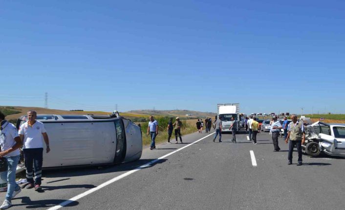 Tekirdağ’ın Çorlu ilçesinde bozuk zemin nedeniyle yavaşlayan otomobile başka bir araç arkadan çarparak devrildi. Feci kazada 5 kişi yaralandı.