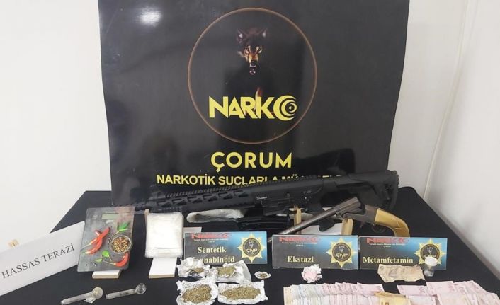 Çorum Emniyet Müdürlüğü, Narkotik Suçlarla Mücadele Şube Müdürlüğü ekipleri tarafından 2023 yılının ilk 5 aylık döneminde 45 operasyon gerçekleştirildi. Operasyonlarda toplam 85 kişi gözaltına alındı. Yakalanan şahısların ikamet, araç ve üzerlerinde yapılan aramalarda 418,69 gram esrar maddesi, 1 kilo 328,97 gram sentetik kannobinoid (bonzai) maddesi, 526 adet ecstasy hap, 26 bin 911 adet sentetik ecza maddesi, 1676,76 gram metamfetamin maddesi, 4 kök Hint keneviri bitkisi, 4,56 gram eroin maddesi, 2,26 gram kokain maddesi, 19,80 gram sentetik kannobinoid hammaddesi, 31,67 gram skunk maddesi ile 13 adet tabanca, 10 adet tüfek, 282 adet mermi, 36 bin 860 TL ve 50 Euro para ele geçirildi.
