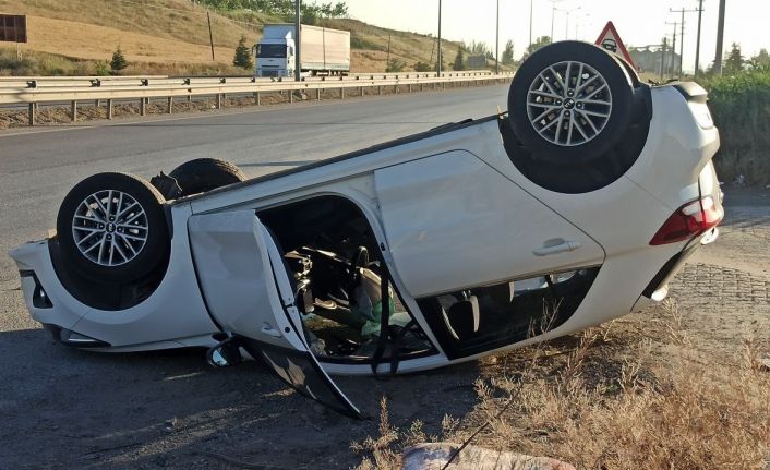 Çorum’un Sungurlu dinlenme tesisinden çıkan kamyona çarpmamak için manevra yapan otomobil kaldırıma çarparak takla etti. Kazada 3 kişi yaralandı.