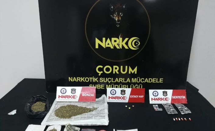 Çorum’da sokak satıcılarına yönelik operasyonda gözaltına alınan 13 zanlıdan biri tutuklandı. İl Emniyet Müdürlüğü Narkotik Suçlarla Mücadele Şube Müdürlüğü ekipleri, teknik ve fiziki takibin ardından "torbacı" olarak tabir edilen sokak satıcılarına yönelik bir operasyon düzenledi. Operasyonda 13 şüpheli gözaltına alındı. Şüphelilerin ev, iş yeri ve araçlarında yapılan aramalarda, 151,30 gr Sentetik Kannobinoid (Bonzai), 3 adet ekstazi hap, 34 adet sentetik eczası, 1 gram esrar, 8 gram Hint keneviri tohumu ve suçtan elde edilen 665 lira para ele geçirildi.