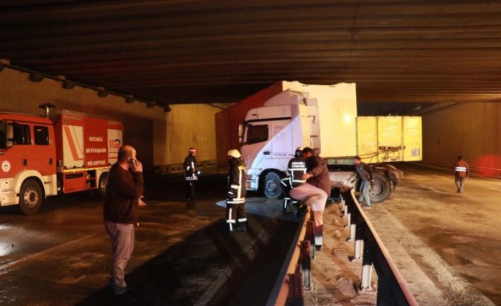 Kaza, Kocaeli’nin Derince ilçesi D100 Karayolu Derince Tüneli’nde meydana geldi. Edinilen bilgilere göre, Ankara istikametinde seyir halinde olan M.K. idaresindeki 41 PV 781 plakalı Mercedes marka tır, yağmur sebebi ile kayganlaşan yolda sürücüsünün direksiyon hakimiyetini kaybetmesi neticesinde, kayarak bariyerlere çarptı. Tır bariyerlere çarpıp savrularak yolun karşısına geçti. Tır sürücüsü M.K., kazayı burnu bile kanamadan atlattı.