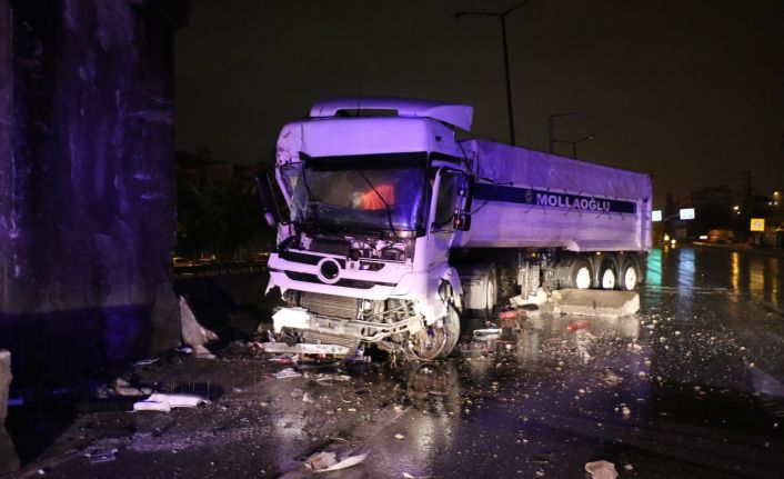 D-100’de hafriyat kamyonu beton bariyerlere çarptı: 1 yaralı
