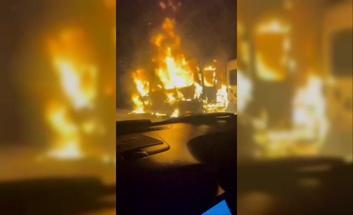 Sakarya’nın Hendek ilçesi D-100 kara yolunda işçileri taşıyan servis aracı alev alev yandı. Herhangi bir can kaybı veya yaralananın olmadığı yangında midibüs hurdaya döndü.