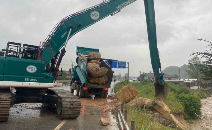 Düzce’de sağanak yağış hayatı olumsuz etkilemeye devam ediyor. Kaynaşlı ilçesi Şimşir mevkiinde Asar Deresi’nin taşması sebebiyle heyelan meydana geldi. Ekiplerin durumu fark etmesinin ardından D100 karayolu Ankara istikameti Üç Köprü mevkiinden trafiğe kapatıldı. DSİ ekipleri heyelan meydana gelen bölgede dolgu çalışmalarına başladı, yol çalışmaların tamamlanmasının ardından trafiğe açılacak.