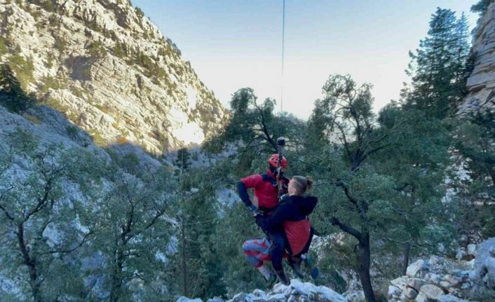 Antalya’nın Kemer ilçesinde çıktıkları doğa yürüyüşünce mahsur kalan 4 Rus uyruklu turist helikopterle kurtarıldı.