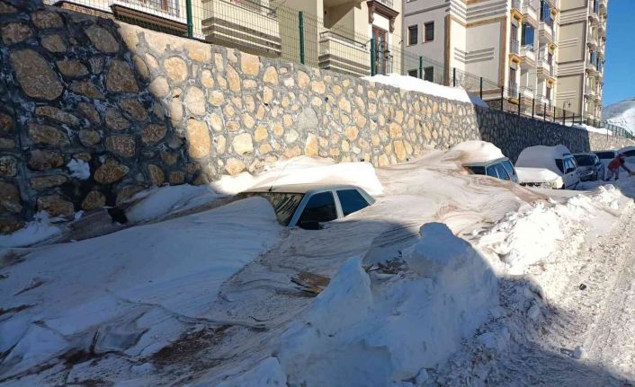 Malatya’nın Darende ilçesinde etkili olan yağış ile kar kalınlığı 60 santimetreye geçerken park halindeki araçlar ise karın altında kayboldu.