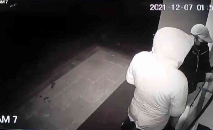 Edinilen bilgiye göre, ilçeye bağlı Yakut Mahallesi Çınarlı Sokak üzerindeki bir apartmanda meydana gelen olayda, parkın içinden gelen 2 şahıs önce otomatik kapıyı bir cisimle araladı. Daha sonra ellerinde bulunan değneğe maske bağlayan hırsızlar, maskeyi içeride bulunan kapı sensörüne göstererek açılmasını sağladı. Apartmana giren hırsızlar girişte bulunan güvenlik kamera monitörünü de çalarak geldikleri parkın içinden uzaklaştılar. Monitörü çalan hırsızlar kayıplara karışırken, pes dedirten hırsızlık anları güvenlik kameralarına saniye saniye yansıdı. Apartman sakinleri hırsızların bulunması için şikayetçi oldu.