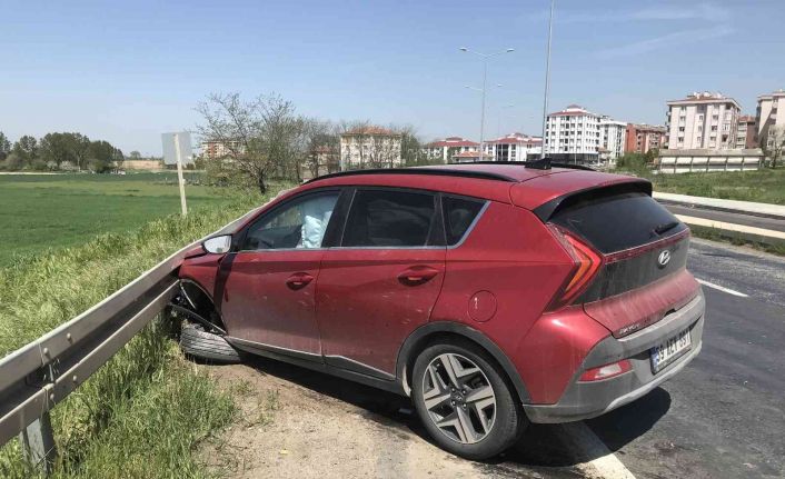 Tekirdağ’ın Muratlı ilçesinde bir araç demir bariyerlere girdi.