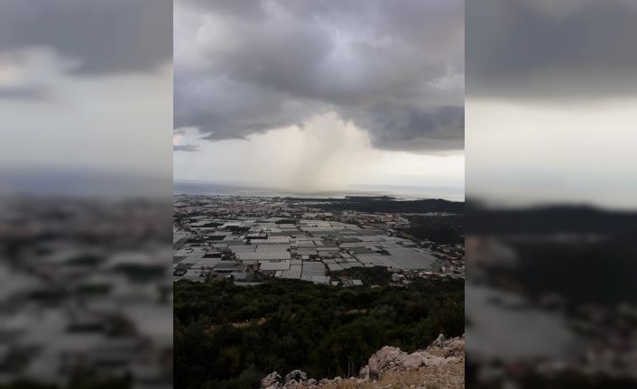 Antalya’nın Demre ilçesinde sahile yakın bölgede ortaya çıkar görüntü ilçe halkını tedirgin etti. Meteorolojiden yapılan aşırı yağmur ve şiddetli rüzgar uyarılarının ardından sel ve hortum endişesi taşıyan ilçede biranda kararan hava ve tek bölgede yoğunlaşan hava akımı vatandaşlara kısa süreli korku yaşattı.