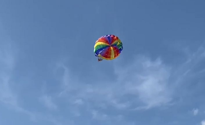 Antalya’da teknenin arıza yapması sonucu havada askıda kalan deniz paraşütündeki anne ve 2 kız çocuğu için turistler ve vatandaşlar seferber oldu. Korku dolu anların yaşandığı olayda anne ve 2 çocuğu kaza yaşanmadan şezlonglarına arasına indirildi.