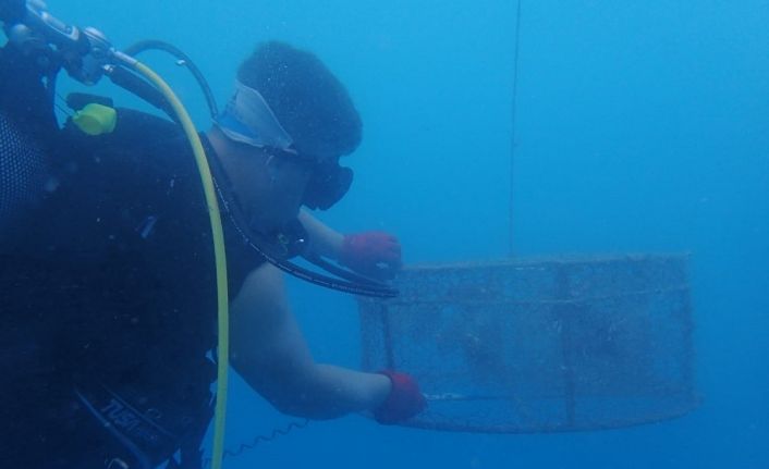 Denizde "kafes" ile balık avlarken yakalandılar
