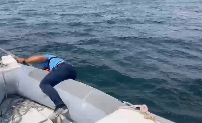 Gemlik Körfezi’nde devriye görevini yeri getiren Sualtı Grup Amirliğine bağlı dalgıç polisler, denizde mahsur kalan martıyı fark etti. Botla martının yanına yaklaşan ekipler, hayvanı sopa yardımıyla çıkardı. Karaya çıkarılan martının ıslandığı ve üşüdüğü için yüzemediği belirlendi.