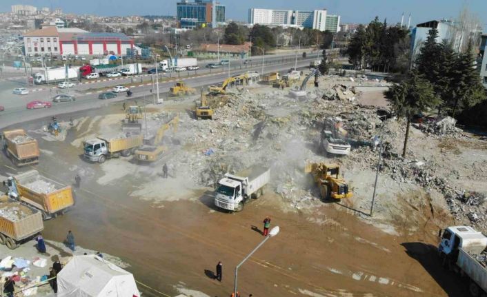 Malatya’da depremin 21’inci gününde devam eden enkaz kaldırma çalışmaları havadan görüntülendi.