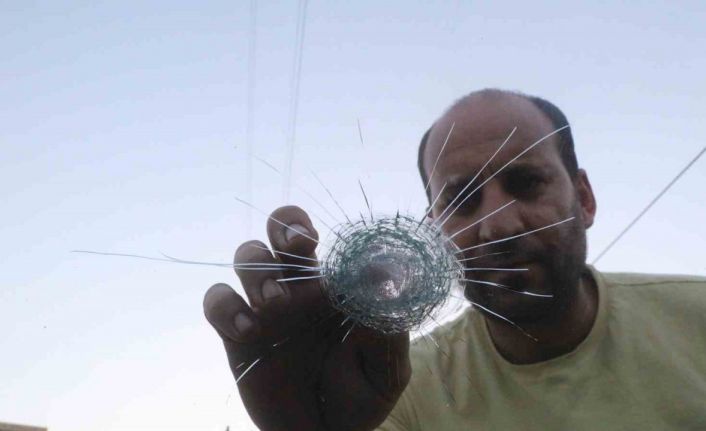 Hatay’da depremzede vatandaşın ailesiyle birlikte yaşadığı konteynere 3 metre mesafede park halinde bulunan aracına yorgun mermi isabet etti. Vatandaşı sevindiren ise merminin konteynere isabet etmemesi oldu.