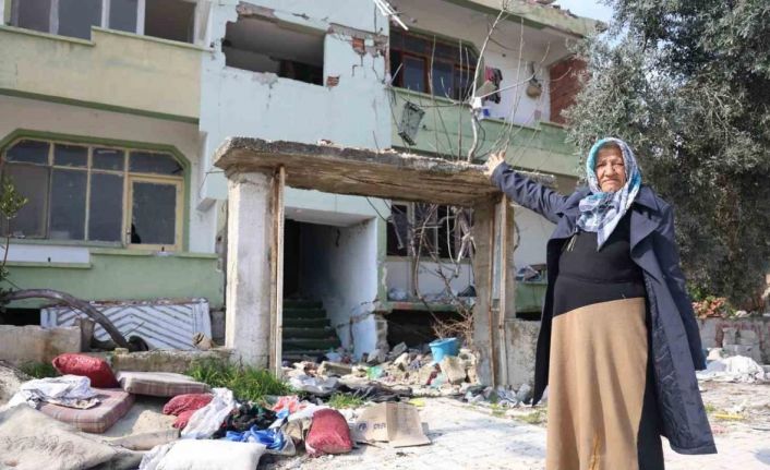 Hatay’da yaşayan Ayşe Koçak’ın hasarlı evindeki demir kapılar ve korkuluklar, kendisini darp eden hırsızlar tarafından çalındı.