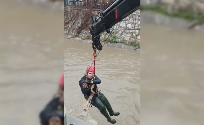 Karabağlar ilçesi Aşık Veysel Mahallesi’nde dere yatağına düşen bir köpeğin fark edilmesi üzerine çevre sakinleri durumu 112 Acil Çağrı Merkezi’ne bildirdi. Yağış nedeniyle su seviyesinin yükseldiği dereden köpeğin kurtarılması için bölgeye İzmir Büyükşehir Belediyesi İtfaiye Dairesi Başkanlığı ekipleri, arazöz ve kurtarma aracıyla sevk edildi. Olay yerine kısa sürede ulaşan ekipler, dere yatağında mahsur kalan köpeği kurtarmak için çalışma başlattı. Yaklaşık 10 dakika içerisinde bulunduğu yerden güvenli bir şekilde çıkarılan köpeğin sağlık durumunun iyi olduğu öğrenildi.