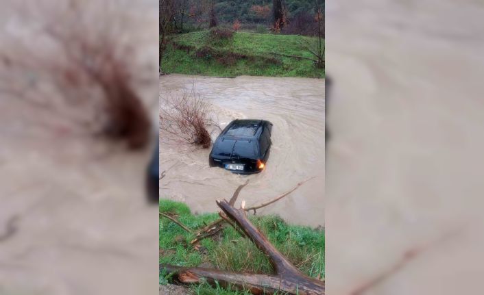 Olay, 8 Şubat’ta Tavşanlı Mahallesi Elmacık Dere mevkisinde meydana geldi. Bölgede etkili olan sağanak, dere yatağındaki su seviyesini yükseltti. Yağışa bağlı toprak kayması sonucu, Ali Güvenç’e ait park halindeki otomobil dereye düşerek sel sularına kapıldı.