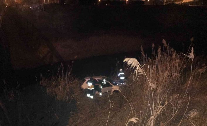 Tekirdağ’ın Muratlı ilçesinde otomobiliyle Ergene dere yatağına uçan 2 kişi, dere yatağından güçlükle çıkartıldı.