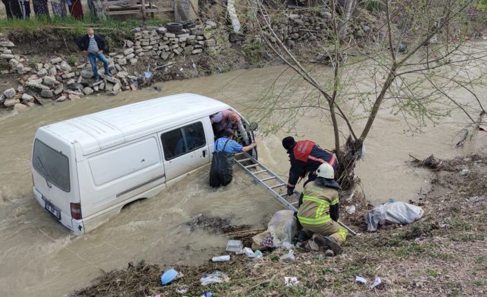 Bursa’da kontrolden çıkan minibüs, dereye uçtu. Ölümden dönen sürücü, azgın sulardan itfaiyenin uzattığı merdivenle çıkabildi.