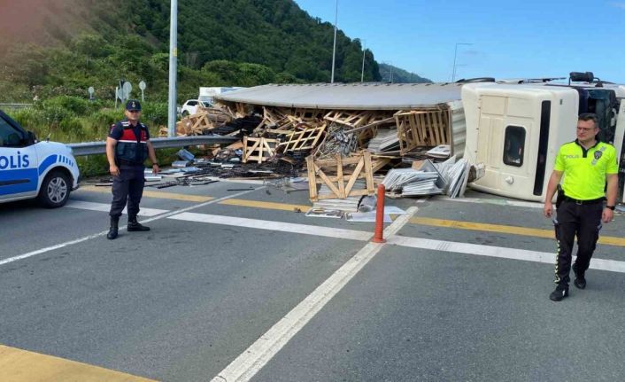 Artvin’in Arhavi ilçesinde devrilen tır karayolunu ulaşıma kapattı. Maddi hasarın yaşandığı kazada ekiplerin müdahalesi sonucunda karayolu yeniden ulaşıma açıldı.