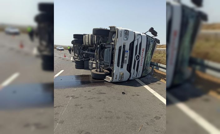 Tekirdağ’ın Ergene ilçesinde sürücüsünün direksiyon hakimiyetini kaybettiği tır devrildi. Tır şoförü kazayı hafif sıyrıklarla atlattı.