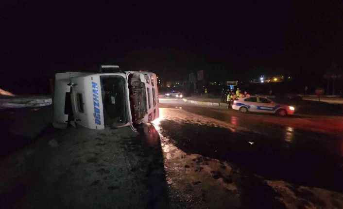 Kaza, Safranbolu ilçesi Babasultan Mahallesi Bartın Kavşağı’nda medyana geldi. Eflani ilçesinden yüklediği cam madeni Ankara’ya taşıyan Mustafa Sönmez (30) idaresindeki 06 FH 8212 plakalı tır, yokuş aşağı indiği sırada frenleri boşaldı. Sürücüsünün manevrası ile kavşaktan dönüş yapan cam madeni yüklü tır yol kenarına devrildi. İhbar üzerine olay yerine polis, itfaiye ve AFAD ekipleri sevk edildi.