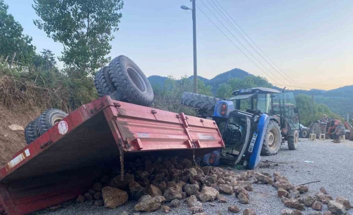 Acı olay, Bolu’nun Göynük ilçesinde Çatacık köyünde meydana geldi. Edinilen bilgiye göre, Çatacık köyünde römorkunda kum yüklü olan 81 FK 298 plakalı traktör, engebeli arazide aniden hareket etti.