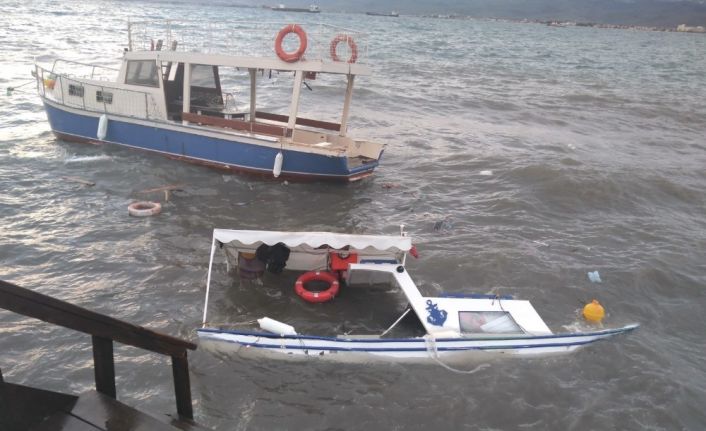 İZMİR (İHA) – İzmir’in Dikili ilçesinde sabaha karşı etkili olan fırtına nedeniyle balıkçı tekneleri battı.