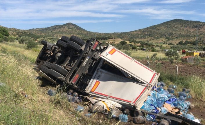 Dikili’de su damacanası yüklü kamyon devrildi: 2 yaralı