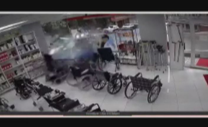 Kaza anı ise saniye saniye işyerinin güvenlik kamerasına yansıdı. Kontrolden çıkan araç bir anda medikal dükkanına daldı. Olayı gazetecilere anlatan işyeri sahibi Engin Çiloğlu, "İçerideydim oturuyordum. Bir anda patlama sesiyle ne olduğunu anlayamıyordum. Bir anda önümde aracı göründe şaşırdım. Kalp krizi geçiriyordu. Büyük ihtimal pedala ayağı sıkışmış olabilir. Bulunduğu yerden alıp yatırmaya çalıştık. Araçta iki kişi vardı. Beyefendi sürüyordu aracı. Çok şaşkınım. İnşallah bir şey olmamıştır. Üzgünüm hakikaten. Mal önemli değil can daha önemli. İnşallah bir şey olmamıştır" diye konuştu.