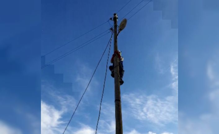 Sivas’ın Koyulhisar ilçesinde köpeklerden kaçarak elektrik direğinin tepesinde mahsur kalan kediyi ÇEDAŞ çalışanları kurtardı.