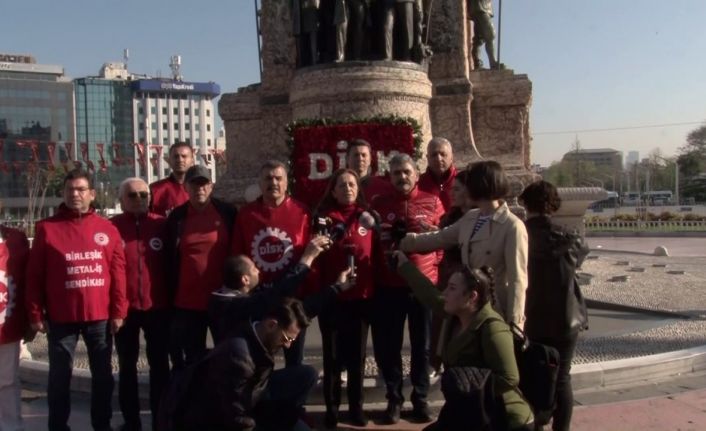 DİSK, 1 Mayıs Emek ve Dayanışma Günü dolayısıyla Taksim Meydanı’ndaki Cumhuriyet Anıtı’na çelenk bıraktı. Törene DİSK Genel Başkanı Arzu Çerkezoğlu’nun yanı sıra sendika üyeleri katıldı. Törende konuşan DİSK Genel Başkanı Çerkezoğlu, " Bugün 1 Mayıs. İşçi sınıfının dayanışma ve mücadele günü. Bugün sadece ülkemizde değil, dünyanın dört bir yanında beş kıtada işçi sınıfı bu ülkenin değerlerini ve güzelliklerini üretenler kendi talepleri ve kendi mücadeleleri ile alanlarda. Yılın 364 günü çalışan işçiler 1 Mayıs günü yaşadığımız bu sisteme karşı itirazlarımızı ifade etmek için alanlarda buluşuyoruz. 1 Mayıs Taksim Meydanıdır. Bugün buraya DİSK yönetim kurulu olarak geldik. Çelengimizi bıraktık. 2 gün önce anmalarımızı da gerçekleştirdik. Şimdi buradan Maltepe meydanına geçeceğiz" ifadelerini kullandı.