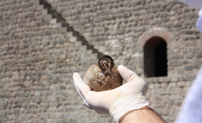 Diyarbakır’ın merkez Sur ilçesinde İçkale mevkinde Amida Höyük’te devam eden kazılarda Osmanlı dönemine ait 782 adet el bombası bulundu.