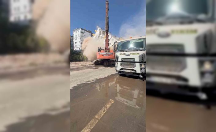 Diyarbakır’da Kahramanmaraş merkezli depremlerde ağır hasar gören 9 katlı apartman, yıkım çalışmaları sırasında aniden çöktü.