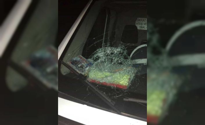 Diyarbakır’ın Eğil ilçesinde hastayı bırakıp dönüş yoluna geçen ambulans, kimliği belirsiz bir kişinin taşlı saldırısına uğradı.
