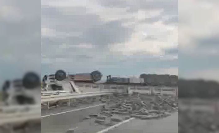 Diyarbakır’da briket yüklü tır yan yattı: 1 yaralı