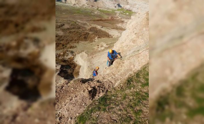 Diyarbakır’ın Bismil ilçesinde iki gün uçurumda mahsur kalan 2 keçi, AFAD ekiplerinin yoğun çabasıyla kurtarıldı.