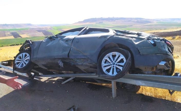 Diyarbakır-Mardin kara yolunda bariyerlere çıkan otomobilin sürücüsü yaralandı.
