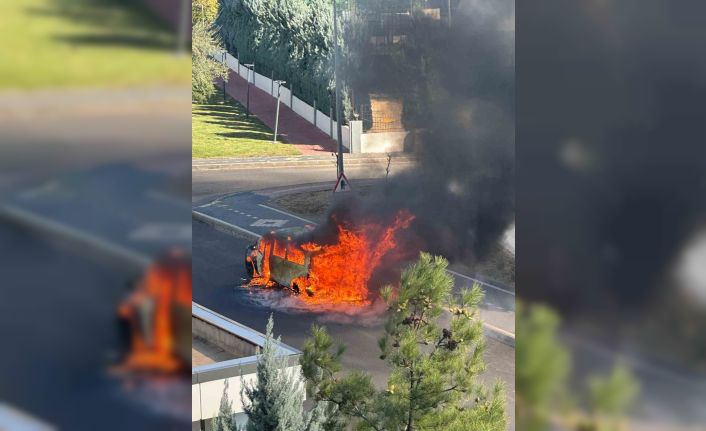 Diyarbakır’ın Kayapınar ilçesinde park halindeki araç, alevlere teslim olarak kullanılamaz hale geldi.
