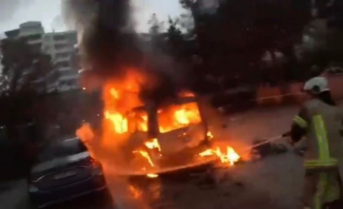 Diyarbakır’da bir sitede park halinde bulunan hafif ticari araç aniden alev aldı. Olay anı, itfaiye erinin kask kamerasına yansıdı.