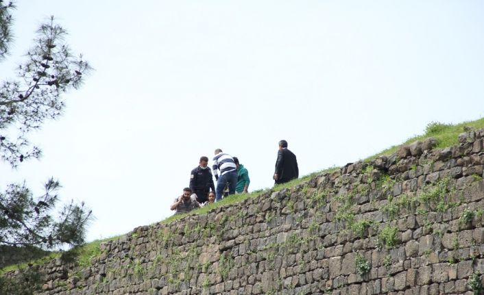 Diyarbakır’ın Sur ve Yenişehir ilçesi arasında sınır duvarı olan tarihi Surların üzerine çıkarak atlamaya çalışan kadını polis ekipleri kurtardı.