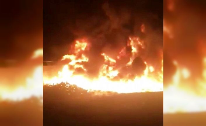 Diyarbakır’ın Çınar ilçesinde tarlada serili hortumlar alev alarak yandı. Geceyi gündüze çeviren yangın çevrede paniğe neden oldu.