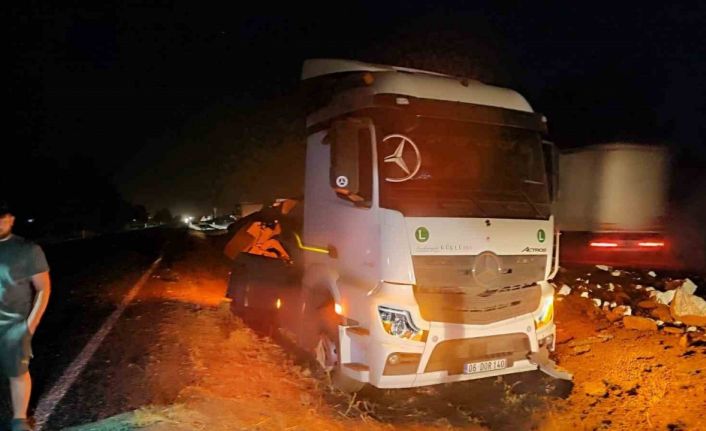 Diyarbakır’ın Bismil ilçesinde giden taş yüklü tırın dorsesi refüje devrildi.