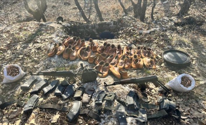 Açıklamada, istihbari bilgi üzerine icra edilen operasyon kapsamında bölücü terör örgüt (BTÖ) mensuplarına ait 2 adet jelikan içerisine gömülü vaziyette, 2 adet kalaşnikof piyade tüfeği, tüfeğe ait 2 adet şarjör, 700 adet Bixi mühimmatı, 17 çift ayakkabı, 17 adet şarjör kütüklüğü, 3 adet palaska ve 1 adet siyah el çantası ele geçirildiği ifade edildi.
