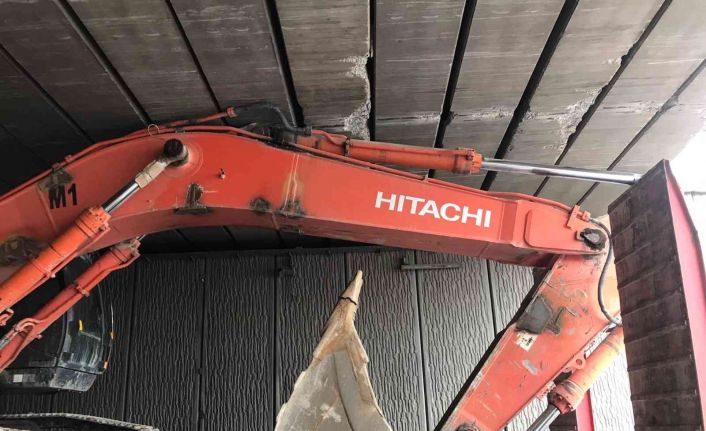 Diyarbakır’ın Yenişehir ilçesi Seyrantepe köprülü kavşağında tırın dorsesinde bulunun iş makinası alt geçide takıldı.
