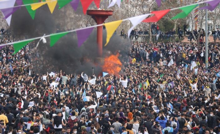 Diyarbakır’da, bir yıl aradan sonra Nevruz Bayramı kutlandı. Yaklaşık 5 bin polisin görev aldığı etkinliğe vatandaşlar, HES kodu sorgulamasının ardından alana alındı. Kutlamalarda terör örgütünü simgeleyen paçavraların açıldığı da görüldü.