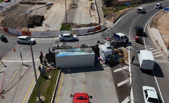 Muğla’nın Menteşe ilçesinde virajı alamayan doğalgaz yüklü Mercedes tır devrilirken, kazada araç sürücüsü hafif şekilde yaralandı.