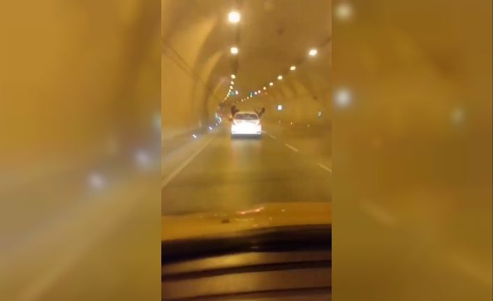 İstanbul’da yılbaşı kutlamaları sırasında ilginç görüntüler oluştu. Dolmabahçe Tüneli’nde seyir halindeki bir araçtan sarkan iki kişi, yılbaşı kutlaması yaptı. Tehlikeli yılbaşı kutlaması cep telefonu kamerasına yansıdı.